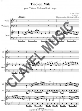 PETRINI F. Trio en Mib N°2 op.30 pour violon, violoncelle et harpe version papier