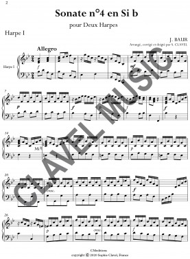 BAUR J. Sonate en Sib pour Duo de harpes Hp 1 version papier
